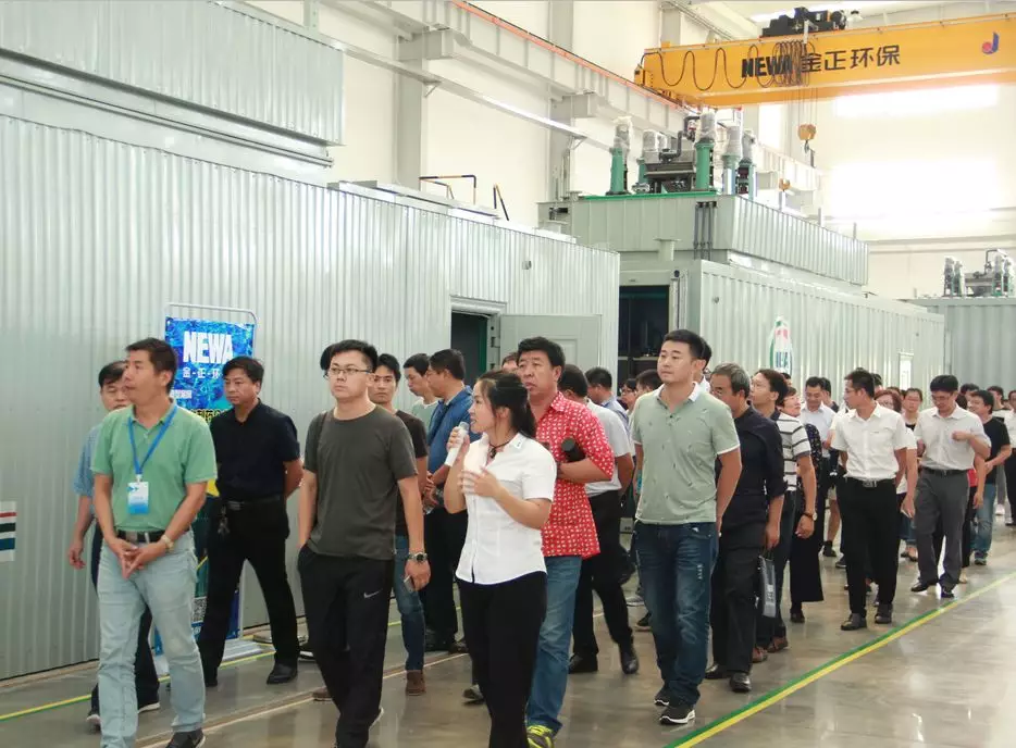 會議報告與對話環(huán)節(jié)結(jié)束后,100余人與會代表蒞臨煙臺金正環(huán)保產(chǎn)業(yè)園參觀考察。