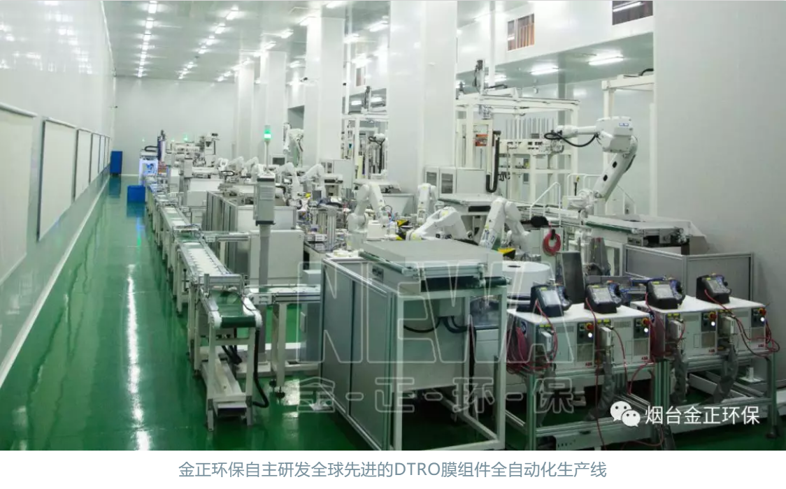這是金正環(huán)保自主研發(fā)全球先進的DTRO膜組件全自動化生產線,該生產線集成了工業(yè)物聯(lián)網、工業(yè)大數(shù)據、工業(yè)機器人、機器視覺、智能物流等最先進的智能技術,可實現(xiàn)日產400-500支膜組件,較行業(yè)內目前普遍的人工組裝方式提高了10倍左右的產能,解決了產品生產規(guī)模化、標準化和運輸?shù)碾y題。