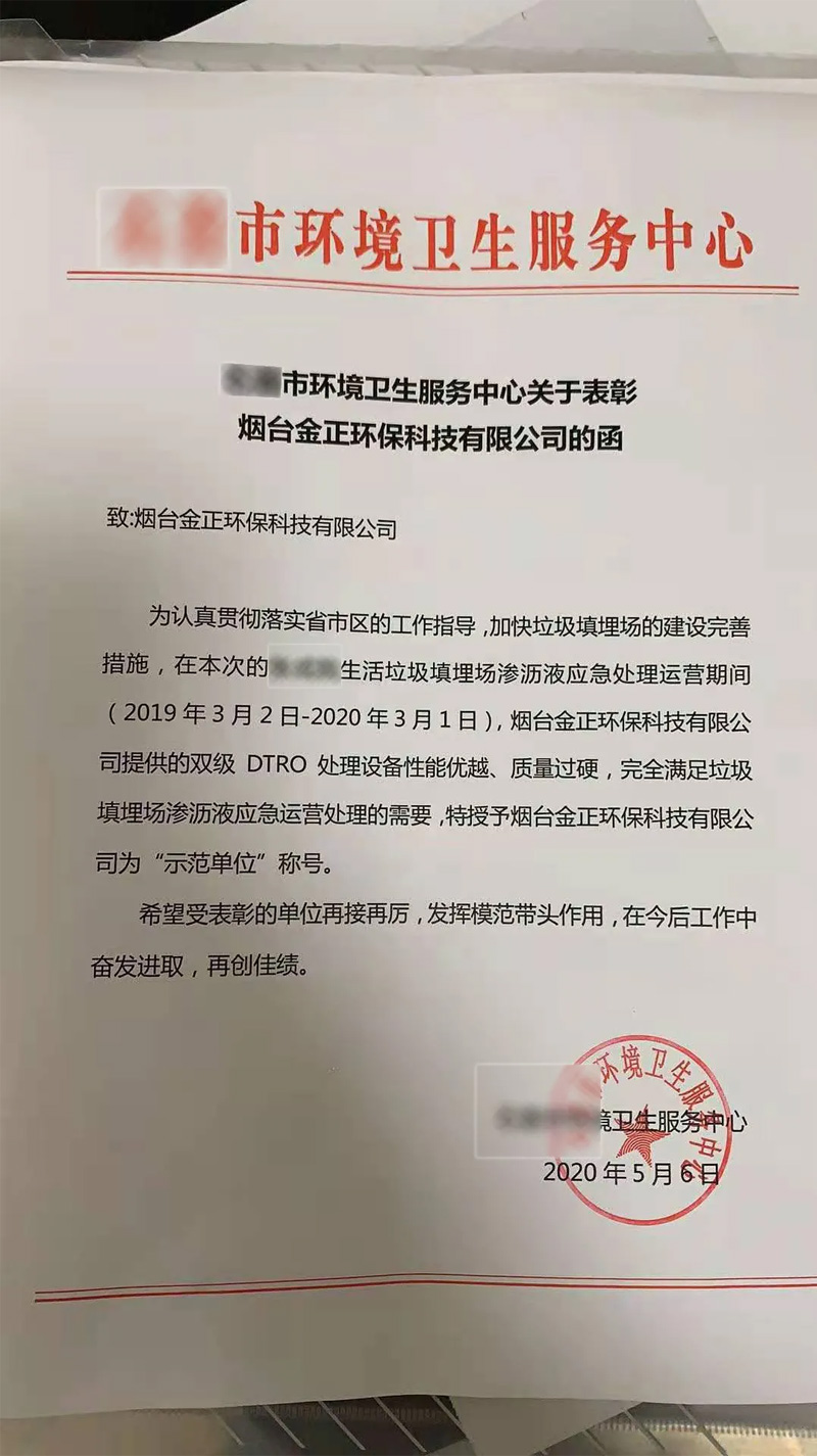 這些榮譽,滿載著的是客戶對金正環(huán)保DTRO產(chǎn)品優(yōu)越的性能和過硬質(zhì)量的肯定,高效率的團隊與優(yōu)質(zhì)的售后服務(wù)理念的認可,也是對我們的激勵和鞭策,更是我們一直以來不斷前進的動力源泉。