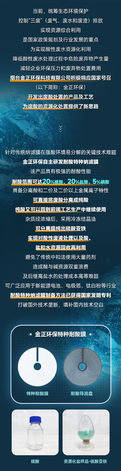 膜技術前沿丨煙臺金正環(huán)保耐酸平板膜攻克酸性廢液資源化處理難題,助力循環(huán)經濟發(fā)展