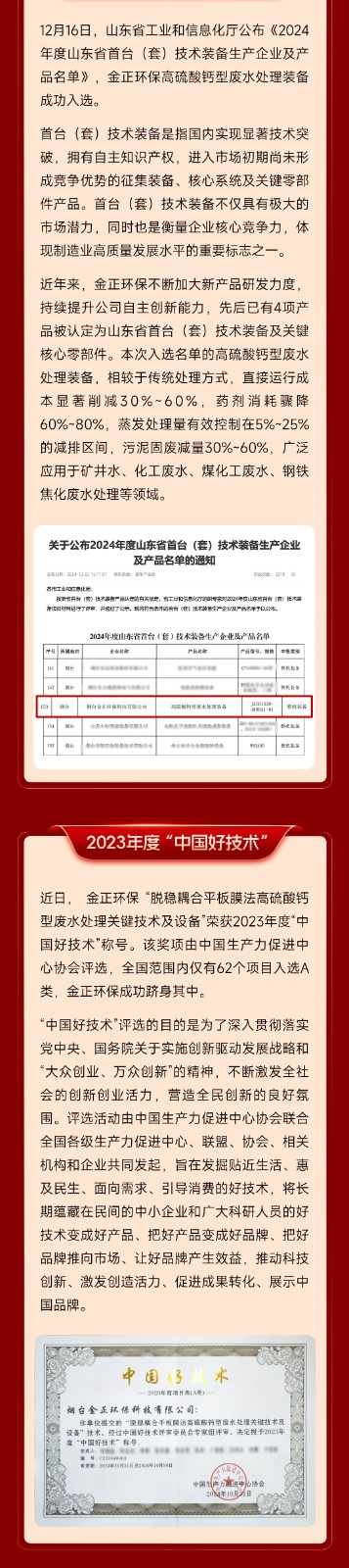 榮耀加冕!煙臺金正環(huán)保連獲多項大獎,行業(yè)影響力和技術(shù)實力再獲認(rèn)可!